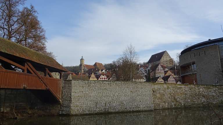 Der Steg mit dem Rotstegturm verbindet die Katharinenvorstadt (hier befindet sich unter anderem die Kunsthalle Würth) mit der Altstadt/ dem Haalplatz. Schönes Fotomotiv, auch wenn bei unserem Besuch eine Baustelle am Steg war. Direkt am Steg befindet sich auch das Café Ableitner - können wir sehr gerne empfehlen.