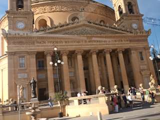 Da ich mir bei meinem ersten Besuch 2007 hauptsächlich das Kircheninnere angeschaut habe, habe ich mir in diesem Jahr auch sehr genau die äußere Gestaltung angesehen. Dabei gefielen mir insbesondere die Statuen der zwölf Apostel. Sechs davon ließen sich gut fotografieren, bei den höher stehenden Statuen hatte ich weniger Glück. Neben diesen zwölf Statuen flankieren zusätzlich Petrus und Paulus die Vorderfront der Kirche. Das Innere der Kirche ist – wie in vielen großen maltesischen Kirchen – prächtig. Sehr schön u. a. die Grabplatten – auch mal „versteckt“ zwischen den Stuhlreihen - und die eine oder andere Seitennische. Zur Geschichte der Kirche wurde bereits ausführlich in der Reisetipp-Übersicht und den vorausgehenden Bewertungen geschrieben - u. a. auch über die Bombe, die bei einem Angriff während des Zweiten Weltkrieges die Kirche traf aber nicht explodierte. Diese im Nebenraum ausgestellte Bombe habe ich mir ebenfalls angeschaut, wobei mir insbesondere das Foto aus der damaligen Zeit gefiel. Die Kirche wurde - bei meinem Besuch - nach einer Mittagspause um 15 Uhr zur Besichtigung geöffnet. Die Öffnungszeiten am Vormittag sind mir leider nicht bekannt.