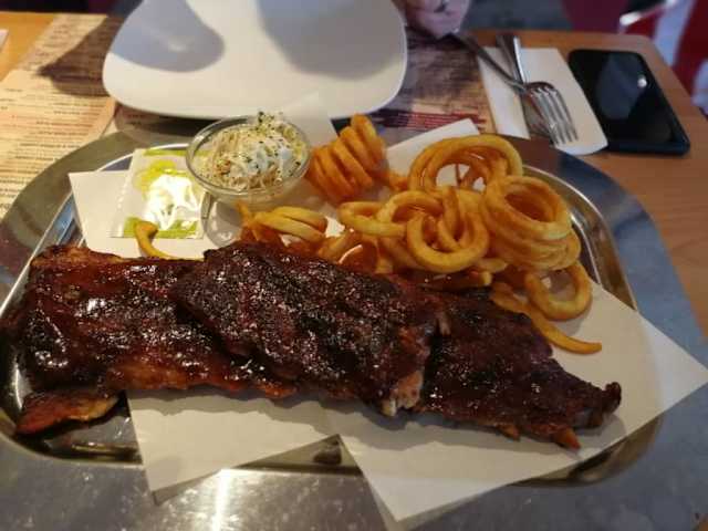 Wir waren auf einem Kurztrip in Kassel und wollten dort -in Erinnerung an unseren letzten USA-Urlaub- unseren Hunger, mit einem leckeren „Sparerib“ stillen. In unserem Hotel im Stadtteil Bad Wilhelmshöhe sahen wir dann eine uns ansprechende Werbung, vom „American Restaurant Route 66“, welches auch nicht weit vom Hotel entfernt war. Also sind wir dann mit der Straßenbahn der Linie 1, bis zur Haltestelle „Kurhessen Therme“ gefahren und von dort die ca. 600 Meter zu Fuß bis zum Restaurant gegangen. Das „American Restaurant Route 66“ befindet sich direkt am nicht zu übersehenden „Kasseler-Tennisclub Wilhelmshöhe“ im Bergpark Wilhelmshöhe und hat auch noch einen großen Biergarten. Das Restaurant selber ist von außen zwar etwas unscheinbar, besitzt aber wie wir später feststellen konnten, kulinarische innere Werte, gepaart mit einer gewissen Wohlfühlatmosphäre, zu der ganz klar auch die aufmerksame und sehr freundliche Bedienung „Anna“, beigetragen hat. Es ist hell, freundlich und ganz im Stile eines „American Diner & Roadhouses“ eingerichtet incl. Empfangstresen und einer Freiheitsstatue als Deko. Auch genügend Sitzplätze sind vorhanden und alles hat einen angenehmen Hauch von Amerika. Aber man sollte schon, wie wir anhand der Gäste festgestellt haben, vorab reservieren, so wie wir es auch getan haben. Wer z. B. wie wir „Baby Back Ribs“ oder einen Burger liebt, ist hier bestens aufgehoben. Unser Essen wurde vom Geschmack her frisch zubereitet, aber trotzdem schnell serviert und war echt lecker. Da wir für uns zusammen nur ein Sparerib mit zwei Teller bestellt hatten, gab es vorab noch die leckeren „Onion Rings“ mit „Sour Cream“, für akzeptable 6.90-. Für das nachfolgende „Single Sparerib“, welches mit „Coles Slaw“ und „Twister Fries“ serviert wurden (siehe Foto), haben wir ebenfalls akzeptable 15.90 € bezahlt. Beide Portionen waren mengenmäßig für uns vollkommen ausreichend, so das wir das bei einem weiteren Besuch genauso machen würden. Gemäß Eigenwerbung besteht das "American Restaurant“ bereits seid 2012 und serviert hausgemachte Burger und Spareribs nach original Rezepten aus den USA. Hat uns schon sehr gut gefallen und sollten wir mal wieder in der Nähe sein, werden wir bestimmt wieder einkehren. Und damit ist schon alles gesagt, um eine 100%-ige Empfehlung, für das „American Restaurant Route 66“, auszusprechen. Danke, dass Ihr diese Rezension gelesen habt.