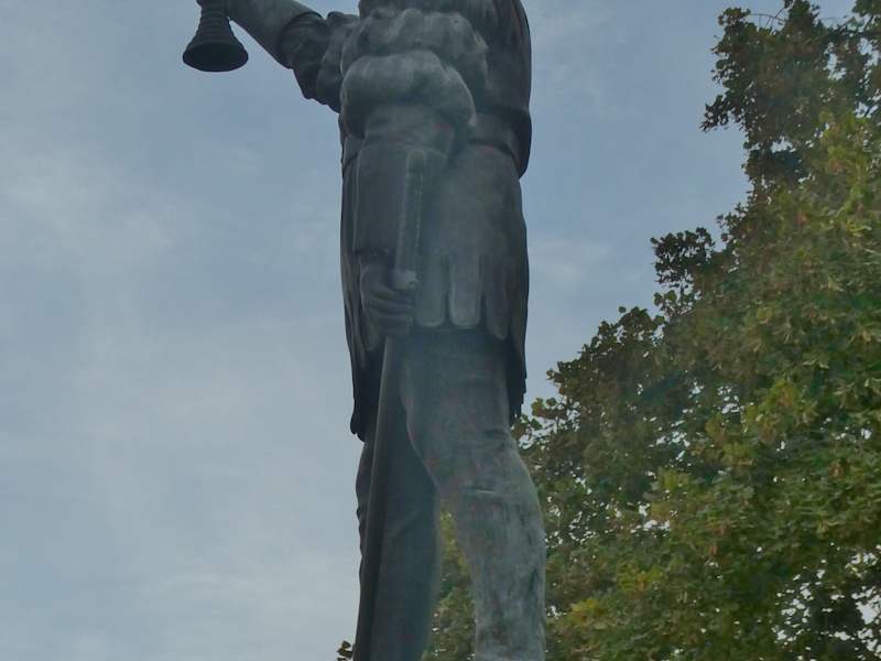 Wenn man in Rüdesheim am Marktplatz und / oder der Kirche St. Jakobus ist, so sollte bietet es sich an, dass man sich auch einmal den Weinbrunnen auf dem Marktplatz anschaut. Auf der Brunnensäule steht ein mit einem Schwert bewaffneter Krieger, der mit einem Weinglas in der rechten Hand den Menschen und der Stadt zuprostet.