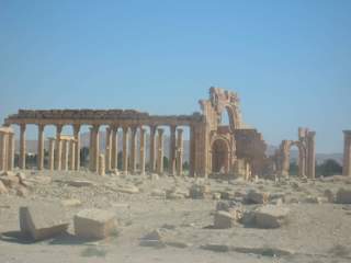 Inmitten der syrischen Wüste liegt die Oase Palmyra mit seinen Ruinenstätten, die zu den interessantesten der Welt zählen und zugleich Unesco-Welterbe sind. Palmyra wird auch Tadmor genannt und bedeutet im arabischesn "Dattel", hier gibt es nämlich unzählige Dattelpamen. Auf halber Höhe (nahe den Turmgräbern), zwischen den Ruinen und der mittelalterlichen Burg hoch oben auf dem Berg, gewinnt man einen ersten Überblick über die Größe der Ruinenstätte. Von der Burg hat man ebenfalls einen grandiosen Blick auf Ruinen, die Stadt Palmyra und die Umgebung. Hier versuchen hartnäckige Verkäufer Postkarten und Souvenirs an die Touriten loszuwerden. Bel-Tempel, Hadrianstor, die lange Kollonadenstrasse (Säulenstrasse), Theater, Tetrapylon (Wahrzeichen von Palmyra) sind besonders sehenswert. Abends werden die Ruinen angestrahlt, ein Spaziergang dorthin lohnt auf jeden Fall. Es ist ratsam, eine Taschenlampe mit zunehmen, denn wenn man von der Hauptstrasse abbiegt (beim Museum), geht man zunächst über eine unbeleuchtete Strasse. Der Bel-Tempel ist eintrittspflichtig, alles andere ist frei zugänglich.