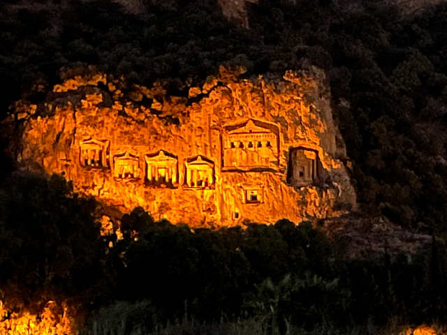 Die Felsengräber von Kaunos haben wir lediglich vom See aus auf dem Boot besichtigt , doch die Entfernung ist gering genug, um die Gräber gut zu erkennen. Hilfreich ist ein Fernglas, mit dem man alle Details erkennen kann.