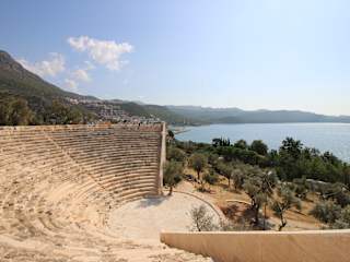 Das unter "Kyaneai" vorgestellte Bild ist vermutlich das Amphitheater in Kas aber keinesfalls jenes von Kyaneai (liegt im Landesinneren und nicht am Meer). Anfahrt mit dem PKW ist etwas holprig und mühsam, doch das riesige früh-hellenistische Theater und die vielen von Ziegen umschwärmten Sarkophage entschädigen. Kein Eintritt, keine touristische Infrastruktur (Gott sei Dank).