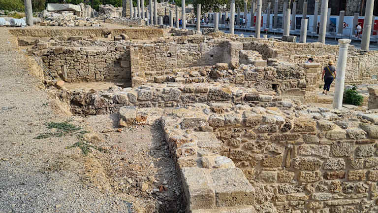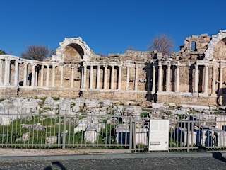 Der größte Teil der Ruinen aus hellenischer, römischer und byzantinischer Zeit ist heute frei zugänglich. Nur für den Eintritt ins Amphitheater ist eine Gebühr fällig. Den Rest des großen Geländes zwischen Nymphaeum und Vespasian-Tor kann man frei erkunden. Es finden sich an den wichtigen Gebäuden (bzw. deren Ruinen) Hinweistafeln, die die wesentlichen Informationen zusammenfassen. Das von Unkraut überwucherte Gelände mag zunächst etwas wild anmuten, aber es macht Freude, sich hier selbst als „Entdecker“ durch den antiken Ort zu bewegen.
