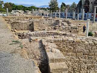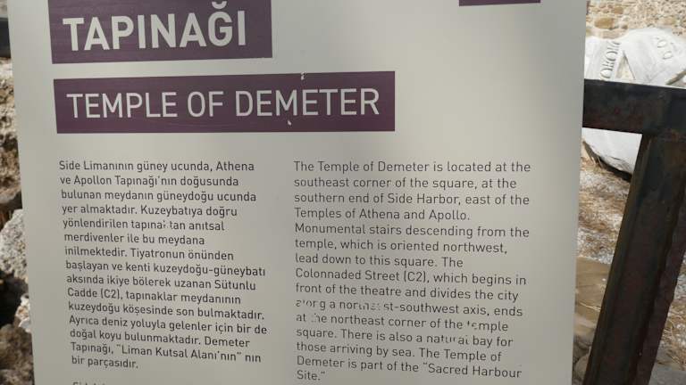 Es gibt in dieser Stadt so viele Ruinen, leider zu wenig Zuordnung in schriftlicher Form. So fotografiert man hausähnliche Gebäude, aber um was es sich handelt, das gibt es weder in einem Reisebuch, noch von einem Touristenbüro dortselbst. Das hatte ab Anfang Oktober schon geschlossen.Toll kann ich da nur sagen. Da hatten die Städter doch einen Archäologen mit dem Namen Afid Mansel, der im Auftrg der Uni Istanbul von 1974 bs 1993 hier arbeitete. Er sprach fliessend deutsch, aber bei Sehenswürdigkeiten fehlt uns doch vieles, man kann nur rätseln. So fnde ich z. B. beim Demeter Tempel einen Hinweis auf Englisch, nichts dagegen, aber nicht alle Personen können aus dem Text einen richtigen Hinweis finden. Ich kenne mich beim Namen Demeter aus, auch weiss ich welcher Gott hier gemeint ist, leider ist da alles sehr dürftig.