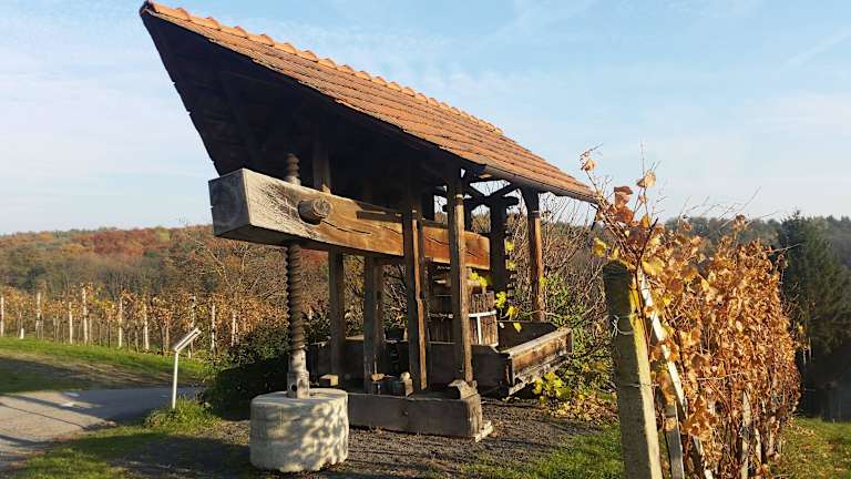 Ich war mit meiner Familie ( Frau und Tochter ) an einem sonnigen Herbsttag ( leider keine Fernsicht ) Anfangs November bei ca. 15 Grad C ! am wunderschönen Traminerweg bei Klöch in der Südoststeiermark unterwegs. Wir sind die beiden Schleifen ( ca. 2x7 km ) im Uhrzeigersinn, jeweils vom Ausgangspunkt bei der Vinothek in Klöch, an einem Tag bei einer Gesamtgehzeit von ca. 4 3/4 Stunden gegangen. Uns persönlich hat der westliche Rundweg besser gefallen. Der gut beschilderte Wanderweg mit dem Logo des Klöcher Traminers und " Auf den Spuren der Vulkane" bewegt sich in einer Höhenlage von 250 m bis über 400 m, immer wieder bergauf und bergab, abwechslungsreich zwischen Wiesen, Wälder und Weingärten, mit steilen Anstiegen, zwischenddurch vorbei an romantischen Plätzen und Raststätten ( Buschenschänken und Gasthäuser ) mit schönen Aussichtspunkten, bis weit in die Landschaft hinein. Einige künstlerisch dargebotenen Skulpturen und lehrreiche Hinweistafeln begleiten uns auf diesen Erlebnisweg. Der Asphaltanteil der wenig befahrbaren Güterwege beträgt max. 20 %. Und als Abschluß haben wir noch in der Vinothek das Markenzeichen des Weinbaugebietes, nämlich den in Österreich einzigartigen "Klöcher Traminer" verkostet. Ein wenig Kondition und Ausdauer ( nicht nur beim Trinken ! ) sind Voraussetzung.
