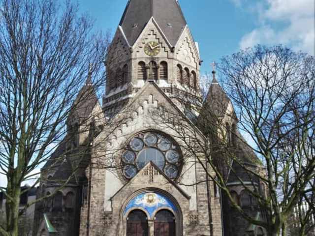 Aus der ehemals evangelischen Gnadenkirche wurde 2007 die „Kirche des Hl. Johannes von Kronstadt zu Hamburg“, ein Gotteshaus der Russisch-Orthodoxen Kirche. 1906 begann man mit dem Bau im neoromanischen Stil: Um ein zentrales Oktogon als Turm gruppierte man mehrere Seitenschiffe – schon damals wirkte die Kirche in dieser Form eher byzantinisch und für norddeutsche Verhältnisse etwas „aus der Zeit gefallen“. Im zweiten Weltkrieg reichlich beschädigt und später wieder restauriert, fehlte es der Gnadenkirche zunehmend an Besuchern und man übergab das Gebäude 2004 an eine Hamburger Gemeinde der Russisch-Orthodoxen Kirche des Moskauer Patriarchats, die das Gebäude grundlegend umbauen ließ. Heute staunt man im Kirchenraum über die wunderschöne Ikonostase zwischen Altarraum und dem Kirchenschiff, wertvolle Skulpturen und bezaubernde Wandmalereien, die direkt auf den Stein aufgebracht wurden – ein Traum in Gold und bunter Farbe. Die Besichtigung der Kirche des Hl. Johannes von Kronstadt zu Hamburg ist täglich von 10 bis 15 Uhr möglich und lohnt sicherlich einen Besuch, der sich überdies bestens mit einem Rundgang durch das Karolinenviertel verbinden lässt. Vielleicht noch gut zu wissen: Die Haltestelle „Messehallen“ der U2 mit ihrem Ausgang „Süd“ führt nach 2 Gehminuten zur Kirche am Tschaikowskyplatz.