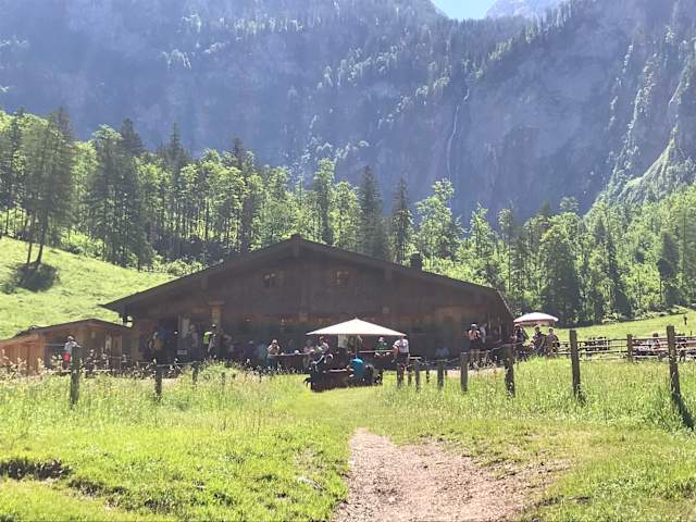Auf dem Weg vom Königssee (Schiffsanleger Salet) zum Obersee kommt man an der Saletalm vorbei. Man kann hier schön sitzen, etwas essen und / oder trinken und dabei die Aussicht genießen. Meine Empfehlung: erst von der Schiffshaltestelle zum schönen Obersee laufen (ca. 1 km einfach), den Obersee anschauen und auf dem Rückweg zum Schiffsanleger Salet am Königssee eine Pause in der Saletalm einlegen. Von der Saletalm bis zum Schiffsanleger sind es dann nur noch ca. 400 Meter.