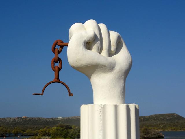 Die Salina Sint Marie ist ohne Frage der „Hot Spot“ für Flamingo-Freunde: In dem großen Seengebiet stehen die rosa Vögel oft zu Hunderten und filtrieren das Wasser mit ihrem Schnabel, um sich von Plankton und kleinen Schnecken im Sediment zu ernähren. Von den aufgenommenen Pflanzenfarbstoffen, insbesondere dem Carotin, verfärbt sich übrigens das Gefieder rosa – Jungtiere sind zunächst einfach grauweiß. Fährt man auf der Straße von Willemstad in Richtung Sint Willibrordus, ist die „Flamingo Area“ bereits ausgeschildert und ein Steg führt zu einer hölzernen Beobachtungsplattform. Die Saline Sint Marie gehörte um 1800 übrigens einem Landherrn namens Jan Kok, der wegen seiner Grausamkeit gegenüber den Sklaven gefürchtet und verhasst war. Noch heute glaubt man an seinen bösen Geist, der im Landhaus an der Saline spuken soll und die weiße Faust mit der zerrissen Kette am Ufer erinnert hier aus gutem Grund an die ersten Sklavenaufstände Curaçaos. Vielleicht noch gut zu wissen: In vielen Landkarten und auf Wegweisern wird für den Flamingo-Salzsee oft der geläufigere Name verwendet: „Saliña di Jan Kok“.