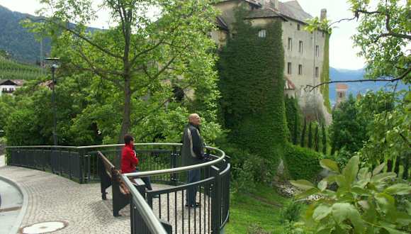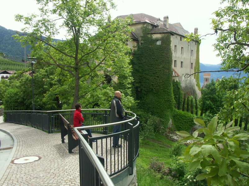 Mit gutem Schuhwerk konnten wir eine sehr schöne Wanderung auf dem Meraner Waalweg entlang unternehmen (früher dienten sie zur Bewässerung der Obstplantagen) . Entlang des Weges gibt es immer wieder schöne Ausblicke in die Landschaft, teils durch Laubwald bis wir den Ort Schenna, unser heutiges Ziel erblickten. Das Schloß kann zu jeder vollen Stunde besichtigt werden. Ein Bummel durch den Ort lohnt sich in jedem Fall. Guter Tip als Gast: Mit der Merancard kann man mit allen Bussen und vielen Eisenbahnen als auch mit diversen Seilbahnen ermäßigt (Busse umsonst) fahren