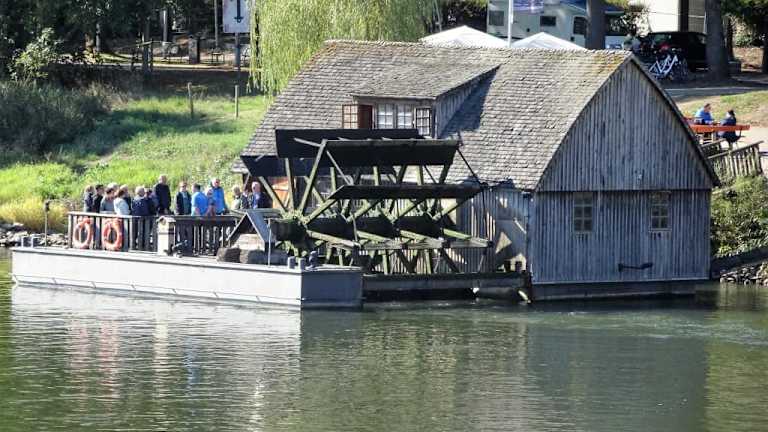Unweit der Mindener Innenstadt liegt an der Glacisbrücke seit 1998 ein besonderes Schmuckstück der Stadt: Die Schiffmühle. Bereits 536 nach Christi wurden erste Schiffmühlen urkundlich erwähnt, die in Rom während einer Belagerung der Stadt auf dem Tiber betrieben wurden. Auch auf der Weser gab es zahlreiche Mühlen dieser Art bis in das 19. Jahrhundert und die nun rekonstruierte und voll funktionstüchtige Mühle entspricht einem Original aus dem 18. Jahrhundert, wobei allerdings zugunsten der Haltbarkeit die Rümpfe von Haus- und Wellschiff aus Stahl gefertigt sind. Das Prinzip der Schiffmühle ist einfach: Auf einem verankerten Schiffskörper ragt ein Wasserrad in den Fluss und wird so von der Strömung angetrieben. Das Getriebe der Mindener Mühle besteht weitgehend aus massivem Eichenholz und der Mahlstein ist über 800 kg schwer. Auch die zehn Schaufeln des Wasserrades sind aus Eiche gefertigt und das Rad hat einen Durchmesser von immerhin 5 Metern. In der Zeit von April bis Oktober kann die Mühle von 11 bis 18 Uhr besichtigt werden und in der Winterzeit lässt sich ein Besichtungstermin über das Verkehrsbüro der Stadt vereinbaren. Besonders für Kinder dürften die riesigen, knarrenden Holzzahnräder des Mahlwerkes spannend sein! Der Trägerverein der Mindener Schiffsmühle, der Pflege und Unterhalt der Mühle übernimmt, bietet neben der kostenlosen Besichtigung auch eine exzellente Führung an. Die Besichtigung der Schiffmühle gehört sicherlich zu den Highlights der Stadt und lässt sich bei schönem Wetter auch noch bestens mit der Einkehr in einem kleinen Biergarten direkt an der Weser verbinden.