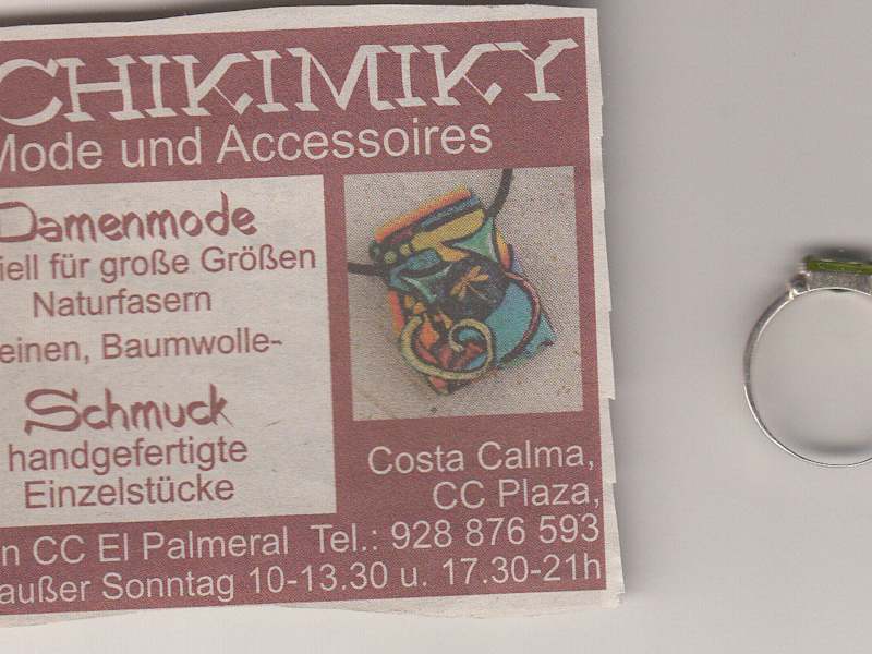 Neben dem CC El Palmeral liegt ein kleiner aber feiner Laden für Damenmoden und Schmuck. Wer gern Schmuck mit den Halbedelsteinen Oliven und Obsidian mag sollte hier mal vorbei schauen. Es ist auch Interessant für Männer. Wir haben auf alle Fälle ein paar Ringe gefunden die man als Mann auch tragen kann. Also nur Mut.