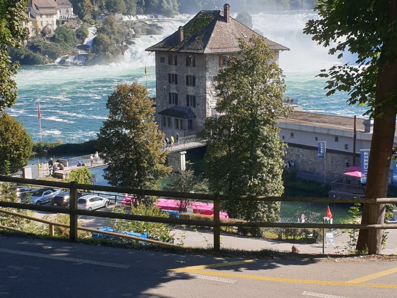 Wir waren am Bodensee bei Freunden zu besuch und besichtigten den Rheinfall von Schaffhausen. Das Schlössli Wörth mit Restaurant befindet sich vor dem Rheinfall von Schaffhausen. Der Reinfall selbst ist ein sehr schönes Naturwunder und lohnendes Ausflugsziel am Bodensee. Ein must have seen im Bodenseeurlaub. Die Parkplatzgebühr am Wasserfall 6,- Schweizer Franken oder 5,- Euro für 2 Std. die sich lohnen. Uns hat es sehr gut gefallen und wir empfehlen dieses sehr schöne Schlössli Wörth am Rheinfall als Ausflugsziel Sehr gerne weiter.