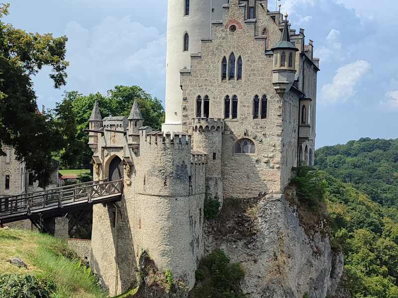 In den Jahren 1840 bis 1842 ließ Graf Wilhelm von Württemberg auf den Fundamenten der mittelalterlichen Burg Lichtenstein das neugotische Schloss errichten. Man blickt von einem Felsvorsprung tief ins Tal auf Lichtenstein und dessen Teilort Honau. Der Unterschied zu meinem Besuch vor drei Jahren waren lediglich die um satte 50% gestiegenen Preise für die Führung und den Zugang zum Schlosshof. Schlosshof Erwachsene: 4 € Ermäßigt: 3 € (Rentner, Menschen mit körperlicher o. geistiger Behinderung, Studenten und Auszubildende) Kinder: 2 € Rundgang durch Schloss Lichtenstein ( inkl. Schlosshof) Dauer: ca. 30 Minuten Erwachsene: 12 € Ermäßigt: 10 € (Rentner, Menschen mit körperlicher o. geistiger Behinderung, Studenten und Auszubildende) Kinder: 6 € Gruppen Erwachsene ab 20 Personen: 10 € pro Person Gruppe Schulklasse: 5 € pro Person Adresse: Schloss Lichtenstein, 72805 Lichtenstein Inhaber: Herzog von Urach Webseite: https://www.schloss-lichtenstein.de/de/
