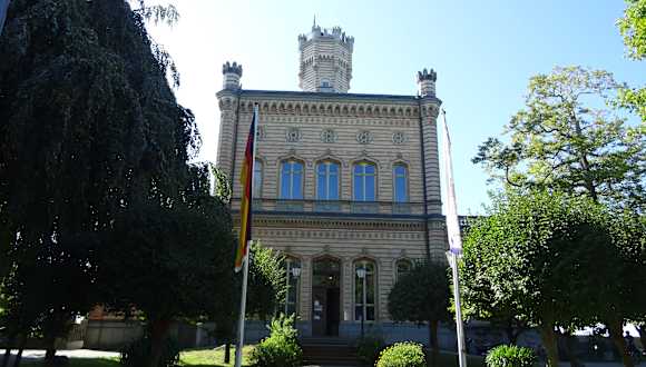 Sehenswertes Gebäude vor herrlicher Bodenseekulisse