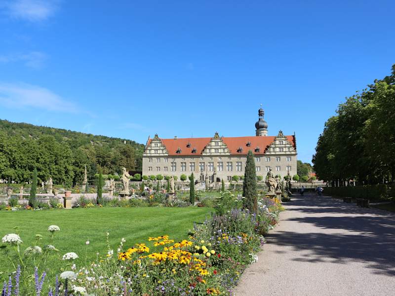 Die alte Wasserburg wurde 1595 als Schloss im Renaissancestil erweitert. Das Gebäude ist eine seltene nach der Idealfigur einer Dreiflügelanlage. Das Schloss liegt im Zentrum von Weikersheim. Man kann nur den Park besuchen oder Park und Schloss. Parkmöglichkeiten sind in 500 m Entfernung. Das Schloss kann man nur mit Führung besuchen, welche aber sehr informativ und interessant gestaltet ist. Heute hat in einem Teil des Schlosses eine Musikakademie ihren Sitz.