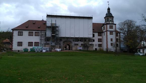 Das Schloss erreicht man von der Altstadt aus nach einem kurzen Aufstieg (etwa 10 Minuten zu Fuß). Es wird derzeit renoviert. Das Museum ist aber geöffnet. Man hat vom Schloss aus einem schönen Blick auf die Fachwerkstadt Schmalkalden.
