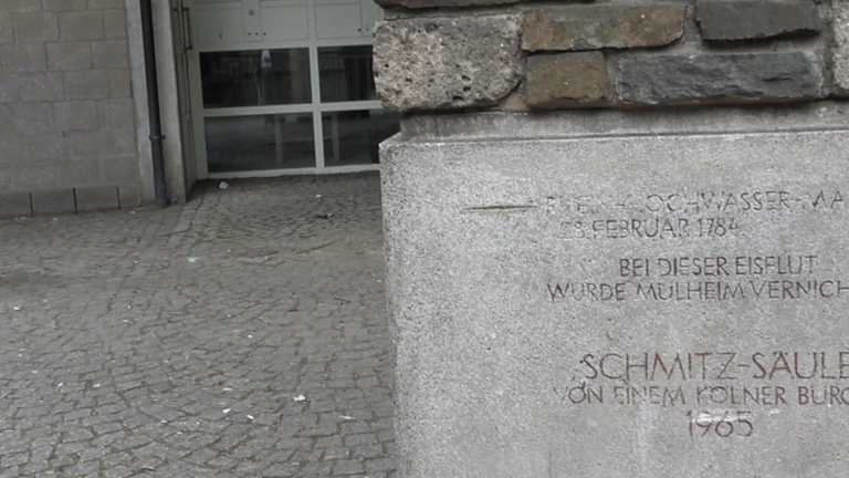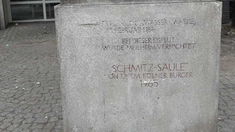 In Köln befindet sich am Platz An Groß St. Martin, schräg vor der Kirche Groß St. Martin, die sogenannte Schmitz-Säule, die 1969 eingeweiht wurde. Sie besteht aus einem beschrifteten Betonsockel, auf dem sich die Säule befindet, die aus unterschiedlichen Natursteinen gefertigt wurde. Wenn man bei der ca. 4,5 Meter hohen Schmitz-Säule ist, so sollte man sich auch einmal die diversen Inschriften durchlesen, die sich am Sockel der Säule befinden.