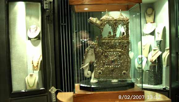 Ein Schmuckhändler in Jaipur bietet ausgewählte sehr hochwertige und teuere Schmuckstücke, von der bestickten Handtasche, Ring, tolle Ketten, Edelsteinen, noch edle Stickereien ' Fadenzeichnugen ' von sehr hohem Wert an