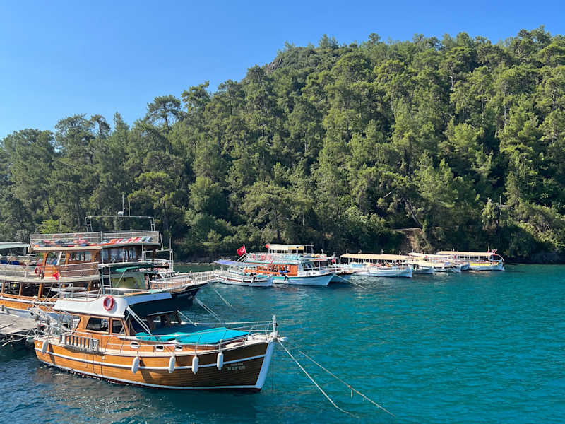 Der Sand auf dieser Insel soll von Antonius für Cleopatra herbeigeschafft worden sein. Er ist so wertvoll, dass er derzeit nicht betreten werden darf und auf dem Weg ins Wasser umgangen werden muss. Ansonsten bietet die Insel einige Ruinen aus römischer Zeit. Am besten erhalten ist das Theater. Die Insel wird auf jeder Bootstour von Akyaka aus angesteuert. Der relativ hohe Eintrittspreis von 15 TL veranlasste uns jedoch, die Insel nur einmal zu besuchen und bei weiteren Bootstouren auf dem Schiff zu bleiben.