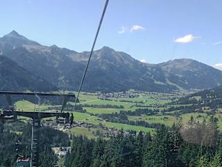 Spannend, weil die "Paragleiter" einen die ganze Fahrt nach oben begleiten.