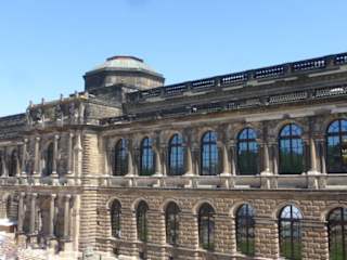 Die Sempergalerie wurde, wie man vom Namen schon ableiten kann, von Gottfried Semper geplant und zwischen 1847 bis 1854 erbaut. Dieser Bau grenzt den Zwinger vom Theaterplatz ab. Mit einer Länge von 127 Metern ist es das größte Bauwerk vom Zwinger. In der Sempergalerie befindet sich die Gemäldegalerie Alte Meister und ein Teil der Skulpturensammlung (beide gehören zu den Staatlichen Kunstsammlungen Dresden). Sowohl die Fassade zum Theaterplatz hin, als auch die Fassade zum Zwingerhof hin sind jeweils schön anzusehen und man sollte diese unbedingt beachten / betrachten. Vom Theaterplatz aus führt ein Tor durch die Sempergalerie hindurch in den Zwingerhof. Im Zweiten Weltkrieg wurde auch der Zwinger und damit auch die Sempergalerie bei den Bombenangriffen vom 13.02.1945 bis 15.02.1945 schwer beschädigt, wobei auch viele Bilder verbrannten. Kurz nach dem Krieg begann die DDR mit dem Wiederaufbau des Zwingers, die Sempergalerie konnte 1956 teilweise wieder eröffnet werden (die endgültige Fertigstellung der Sempergalier erfolgte 1960). 1988 begann die DDR mit einer umfangreichen Renovierung und Rekonstruierung der Sempergalerie, welche (nach der Wiedervereingung Deutschlands) Ende 1992 wiedereröffnet werden konnte.