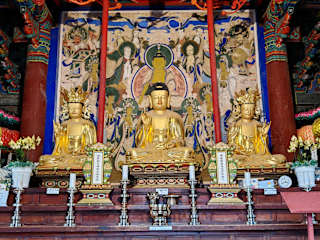 Der Seoraksan-Nationalpark liegt im Nordosten Südkoreas nahe der Stadt Sokcho und ist bekannt für seine dichten Wälder, Granitberge und kleinen Wasserfälle. Wir waren im April da und es war herrlich ruhig an dem Tag, wir mussten lediglich bei der Seilbahn kurz anstehen. Mit der Seilbahn bzw. dem Seorak Cable Car ist man in ca. 6 Minuten Fahrt auf dem Gipfel des Gwongeumseong. Bis zum eigentlichen Aussichtspunkt sind es dann nochmal 10-15 Minuten Fußweg, bei Regen wird es hier auch recht rutschig und man sollte entsprechend gute Schuhe tragen. Nah beim Eingang des Seoraksan-Nationalparks befindet sich der buddhistische Sinheungsa-Tempel mit der großen, bronzenen Buddha-Statue.