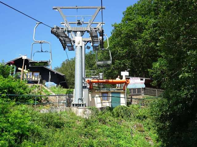 Zu den Attraktionen Viandens gehört ohne Frage der einzige Sessellift Luxemburgs, der vom Ufer der Our auf den Schlossberg Belvedere führt. In einem sehr gemütlichen Tempo geht es zunächst über den Fluss und anschließend weitere 220 Höhenmeter durch den Wald bis zur Bergstation mit Einkehrmöglichkeit in einer Hütte. Während der Fahrt hat man einen wunderbaren Blick auf die Stadt und den Stausee - über einen etwas holprigen Waldweg erreicht man in etwa 15 Gehminuten auch das Château de Vianden. Die Fahrt mit dem Sessellift kostet für Erwachsene 3,90 € (Stand 7/2017), lohnt sich allein wegen des einmaligen Panoramablicks und ist überdies im Leistungsumfang der „Luxembourg-Card“ inkludiert.