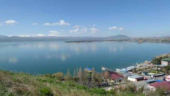 Nach dem Besuch des Sewanklosters machten wir noch eine Bootsfahrt auf den Sewansee. Mit einem kleinen Dampfer kann man auf den Sewansee eine Rundfahrt unternehmen, die Anlegestelle liegt an der Sewan-Halbinsel in unmittelbarer Nähe des Parkplatzes. Das Schiff mit maximal 25 Plätzen hat laut Reiseführer keine regelmäßigen Fahrzeiten, sondern fährt auf Vorbestellung. Der Sewansee gilt als die „blaue Perle“ Armeniens. Wirklich ein Stückchen Himmel in den Gebirgen, – rief begeistert der berühmte russische Schriftsteller Maksim Gorkij (1868 -1936), als er den Sewansee sah. Der Sewansee liegt inmitten des Kleinen Kaukasus und ist mit 1900 Metern über den Meer einer der höchstgelegenen Seen der Welt. Er hat eine Länge von 78 Kilometern und eine Breite von bis zu 35 Kilometern. Der See ist fast doppelt so groß wie der Bodensee. Das Süsswasserreservoir wird von 28 Flüssen aus den umliegenden Bergen gespeist und nur der Fluss Hrazdan fließt heraus Im Sewansee gibt es verschiedene Fischarten wie z.B. Forelle, Weißfisch und Karausche. Auch bei warmem Wetter klettert das Thermometer der Wassertemperatur nicht über 18-20 Grad. Viele Gelehrten meinen, dass der Sewansee im Krater eines erloschenen Vulkans entstand. Die anderen Gelehrten versuchen zu beweisen, dass vor Millionen Jahren die Vulkanlava die Flussströmung sperrte und als Ergebnis der Sewansee entstand. Leider wurde aus Bewässerungs- und Energiezwecken im 20.Jahrhundert aus dem Sewansee sehr viel Wasser entnommen, so dass der Wasserspiegel bis 1988 um insgesamt fast 20 Meter gesunken war. Durch den Ökosystem Schaden wurde die Sewan-Insel zu einer Halbinsel. Arpa-Sevan und Vorotan-Arpa Tunnel wurden daraufhin gebaut, um den Wasserstand wieder zu erhöhen. Seit 2002 hat die neue Strategie, die aus dem See entnommene Wassermenge streng kontrolliert, den Wasserstand um etwa 3,5 m wieder erhöht. Da die natürliche Ökobilanz weiterhin instabil ist, sind endemische Arten wie die Forellen des Sewansees, der armenische Leopard oder das Mufflon sehr stark gefährdet. Es gibt bereits Überlegungen, den Fischfang am Sewansee aufgrund der starken Überfischung ganz zu verbieten und damit das sensible Gleichgewicht wiederherzustellen. Wir kamen auch bei unserer Bootsfahrt auch bei der eingezäunten Sommerresidenz des Präsidenten von Armenien vorbei. Eine entspannte und abwechslungsreiche Bootsfahrt.