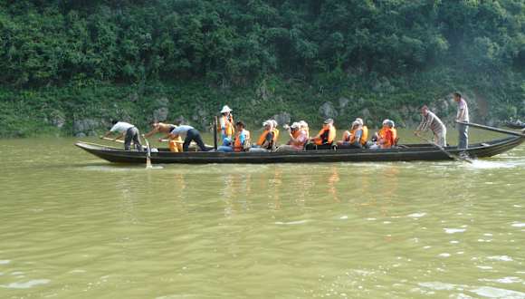 Von unserer Flußkreuzfahrt machten wir am 2. Tag einen Ausflug zu den Treidlern am Shennon Fluß. Wir wurden mit einem kleinerem Motorschiff abgeholt und dann ging die Fahrt ca. 90 Minuen flußaufwärts den Shennon Fluß hoch. Vorbei an einer großen Tropfsteinhöhle, und an den hängenden Särgen, die vor vielen Jahren in bis zu 100 Metern Höhe aufghängt wurden, eine alte Tradition. Dann kamen wir an einer Station an, wo das Motorschiff nicht mehr weiter konnte, wir stiegen in kleine Bote um, diese wurden von 4 einheimischen, die bis zu 75 Jahre alt waren ( Hut ab ) über eine Stunde flußaufwärts gerudert, dann wurden die Boote nach alter Tradition getreidelt, das heißt die Boote wurden mit einem Seil vom Ufer von den Leuten flußaufwärts gezogen. Dann ging es die ganze Tour zurück, Gesamtdauer ca 6 Stunden, sehr erholsam wenn das Wetter mitspielt.