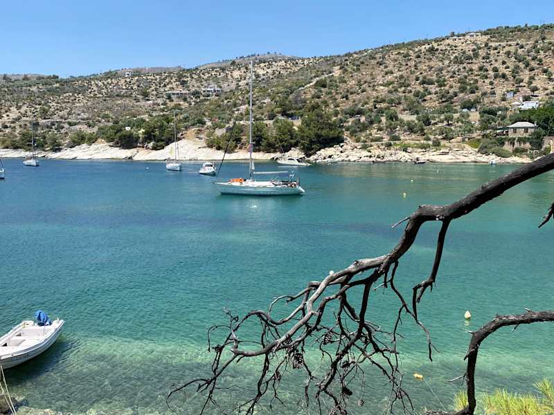 Man kann am Strand laufen und so die nächste Stadt Prinos erreichen. Das Meer ist schön und man kann lange hinein laufen bis es tief wird. Im Mai war das Wasser noch etwas kalt, da immer ein leichter Wind ging.
