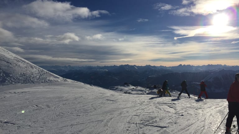Das Skigebiet ist wirklich gross und schön. In 10 Jahren wird lt. Skilehrer der Gletscher weggeschmolzen sein. Er ist sowieso nur sehr klein, aber dort oben konnte man im April noch gut fahren, während im Tal alles sulzig war. Sehr empfehlen kann ich die Skischulen dort. Sie sind anders organisiert als in Österreich. Kein lästiges Vorfahren, die Eltern teilen nach bestem Gewissen ein. Passt es nicht, wird nach einem halben Tag getauscht. Es gibt nur Skikurse mit gemeinsamer Mittagspause, da immer woanders gerastet wird, um möglichst weit im Skigebiet rumzukommen. Und die Eltern kommen auch mal weiter raus, da sie nicht um 12 Uhr wieder am Skischultreffpunkt sein müssen. Jedes Kind bekommt eine schriftliche Einschätzung am Schluss nach dem Rennen. Soviel Feedbäck hatten wir noch nie. Die Skischule ist allerdings auch fast doppelt so teuer. Die restlichen Preise gehen noch, wenn man nicht gerade in Gourmetrestaurants geht.