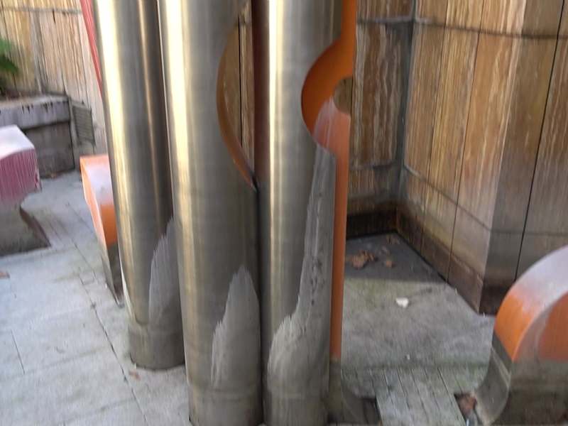Eine besondere Skulptur befindet sich am Rotebühlplatz. Die Skulptur ist von Gerlinde Beck und wurde 1981 aufgestellt. Das Kunstwerk ist über drei Ebenen angelegt. Über eine Rutsche fließt Wasser in ein mittleres Becken, von dem aus es in das untere Becken. Die feuerroten Rutschen bilden einen lebhaften Kontrast zu der mit Travertinplatten verkleideten Wand. Adresse: Rotebühlplatz, 70173 Stuttgart Webseite: https://www.stiftung - stuttgarter - bruennele.de/wasserspiel - mit - pfeifen - rotebuehlplatz/ Geodaten: Q5FF+HM Stuttgart