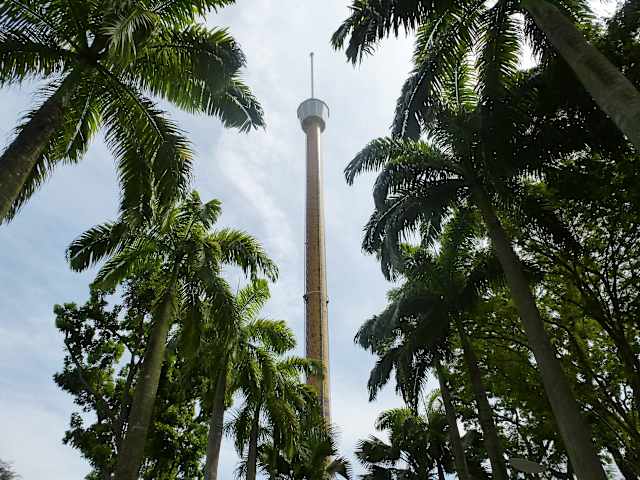 Im Rahmen unseres Besuchs der Insel Sentosa besuchten wir auch den Sky Tower. Man hat eine Rundumsicht über Singapur, um den Mast dreht sich eine Art Gondel, die nach oben gezogen wird. Oben angekommen wird man noch mehrmals um die eigene Achse gedreht, bei guter Sicht kann man weit ins Land sehen. Jeder hat einen Fensterplatz und die Gondel ist klimatisiert.
