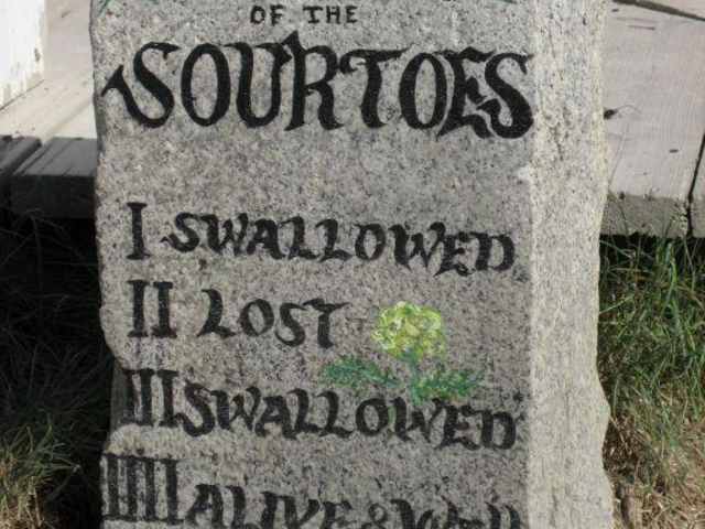 Das ist der „Sourtoe Cocktail“ (Saurer-Zeh-Cocktail) in der Sourdough Bar im Downtown Hotel in Dawson City! Allabendlich zwischen 21 und 23 Uhr versammeln sich neugierige Touristen und tapfere Trinker in der Bar, um gegen einen kleinen Obolus (ich glaube, es kostet 8 Dollar) ihren Mut zu beweisen. Und es kostet wirklich Mut, ein Wasserglas voll eines beliebigen Getränkes so auszutrinken, dass der darin schwimmende Große Menschen-Zeh wenigstens einmal die Lippe des Trinkers berührt! Igitt, igitt! Als Lohn für diese Großtat bekommt der Trinker eine Urkunde und wird in das Sourtoe-Ehrenbuch eingetragen, das bis heute mehr als 20 000 (!) Namen enthält. „You can drink it fast, You can drink it slow, But the lips have gotta touch the toe!” Wie ist es zu dieser makabren Trinksitte gekommen? Die Idee stammt von Captain Dick Stevensen, genannt „the river rat“, der nach seiner Pensionierung nicht mehr genügend Geld für seine Drinks hatte. Der erste Zeh gehörte einst an den Fuß eines Trappers, der mit seinem Bruder zur Zeit der amerikanischen Prohibition Rum aus Kananda nach Alaska schmuggelte. Bei einem solchen Unternehmen erfror sein Großer Zeh und wurde vom Bruder mit Hilfe eines kräftigen Axtschlages entfernt. Die Brüder bewahrten den Zeh zur Erinnerung daran in Schnaps. Als Captain Dick später die Hütte der Gebrüder übernahm, fand er den Zeh und kam so 1973 auf seine verrückte Idee, die bis heute weiterlebt. Der erste Zeh hatte allerdings nicht lange überlebt: 1980 kippte ein Trinker bei einem Rekordversuch nach dem 13. Glas vom Barhocker und verschluckte den Zeh. Nr. 2 ging bei einer Renovierung der Bar verloren; Zeh Nr. 3 wurde von einem betrunkenen Soldaten gestohlen (und später zurückgegeben); Zeh Nr. 4 wurde 1983 verschluckt und Zeh Nr. 4 mal wieder gestohlen. Doch großzügige Spender aus ganz USA schickten ihre amputierten Zehen (große und kleine) als Ersatz, so dass die Sourdough Bar heute eine Reserve von 12 Zehen in ihrem Kühlschrank aufbewahrt. Ein Gedenkstein vor der Bar erinnert an das Schicksal der ersten 4 Zehen. Und es gibt doch einen noch ekligeren Cocktail! Und das ist der „Sourfoot Cocktail“. Hierbei schwimmen 1 großer und 4 kleine Zehen im Glas!