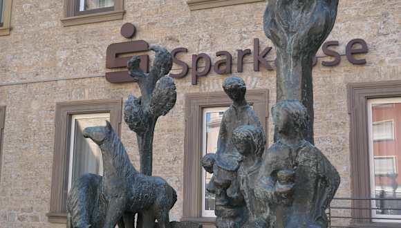 In Schweinfurt befindet sich beim Roßmarkt 5 – 9 die Sparkassen. Hier findet man auch den sogenannte Sparkassen-Brunnen auf dem kleinen Sparkassen-Vorplatz (vor dem Eingang zur Sparkasse). Dieser Brunnen verweist auf die ehemalige Bedeutung vom Roßmarkt für den Pferdehandel, Getreidehandel, Weinhandel, Geldhandel und sonstigen Handel. Wenn man beim Roßmarkt ist, so bietet sich an, dass man sich diesen Brunnen auch einmal näher anschaut.