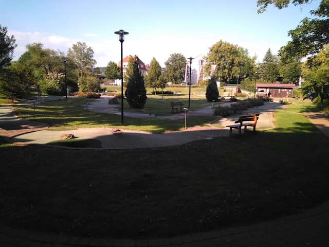 Am Anfang des Kurparks findet sich in Bad Sooden-Allendorf ein außergewöhnlicher Golfplatz, der auf den ersten Blick an das klassische Minigolf erinnert, sich davon allerdings deutlich unterscheidet: Es handelt sich um „Spielgolf“, welches dem echten Rasengolf wesentlich näher kommt. Die 18 Bahnen des Platzes sind mit einer Länge von bis zu 16 Metern deutlich größer, mit Kunstrasen belegt und mit Roughs und Semi-Roughs durchsetzt. Böschungen, Felsen, Baumstämme, Hügel und Mulden dienen als Hindernisse und anders als beim Minigolf stehen die Spieler direkt auf der Bahn. Wer im Besitz einer Kurkarte ist, bekommt beim Spielgolf-Platz eine Ermäßigung auf den Eintrittspreises und eine kleine Restauration versorgt die Spieler mit Erfrischungen. Ich habe auf dem Platz eine spaßige Stunde verbracht und kann einen Besuch uneingeschränkt empfehlen.