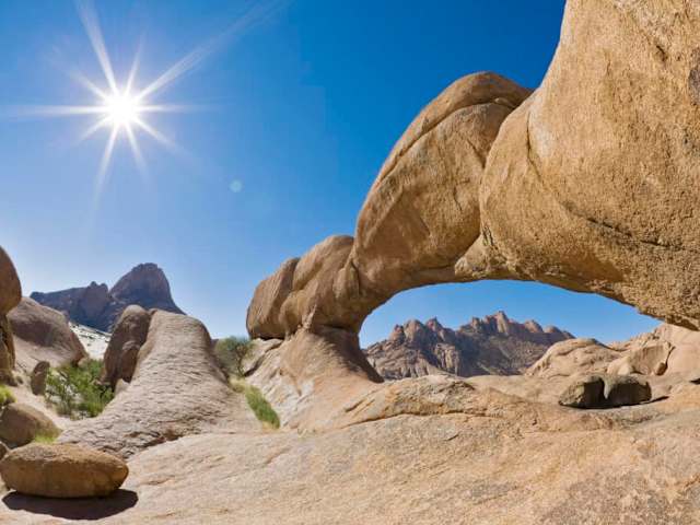 Das „Matterhorn“ Namibias. Mit seinen 1.728 Metern ist das markante Spitzkoppe-Felsmassiv zwar keineswegs der höchste Berg Namibias, doch aufgrund seiner auffälligen Umrisse der Bekannteste im Land. Schon aus großer Entfernung lässt sich das Inselgebirge inmitten einer endlos-trockenen Ebene erkennen. Die beinahe harmlos wirkende Spitzkoppe ist jedoch äußerst schwer zu besteigen. Erstmals wurde sie 1946 bezwungen. Nur erfahrene Bergsteiger können den Berg mit entsprechender Vorbereitung und Ausrüstung meistern. Verfasst von HolidayCheck