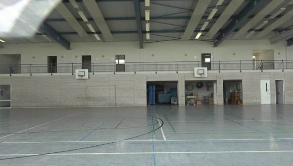 Die Sporthalle wurde 1993 erbaut. Es ist ein rechteckiger Betonbau. Bei der Halle gibt es einen Rasenplatz und einen Hartplatz. Eine große Glasfront auf der Nordseite bringt viel Licht in die Halle.