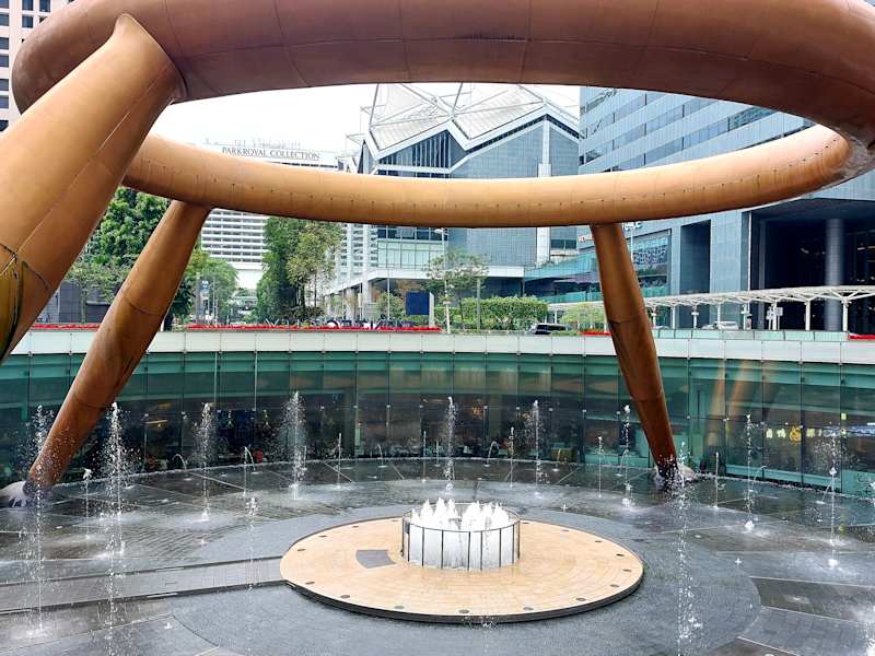 Der Fountain of Wealth, der sich inmitten der Suntec Shoppingmall befindet, ist der größte Brunnen weltweit. Eingeweiht wurde der 14 Meter hohe Brunnen 1997 und gefertigt ist er aus Silikonbronze. Zudem folgt er den Feng-Shui Prinzipien. Der Brunnen steht dadurch nicht nur für Reichtum, Wohlstand und Erfolg, sondern im Allgemeinen für positive Energie. Das zieht natürlich zahlreiche Menschen an, die fest daran glauben und davon profitieren möchten. Vom Foodcourt der Mall im EG aus gibt es einen Zugang zum Brunnen. Man stellt sich in die Warteschlange und wartet bis man drankommt den Innenraum der Mall mit dem Brunnen betreten zu dürfen. Maximal dürfen nur etwa 20 Personen gleichzeitig hinein, die dann den Brunnen dreimal umrunden und sich in der Gischt baden dürfen. Dabei kann man sich dann etwas wünschen. Wer nur einen Blick auf den Brunnen werfen möchte, nimmt einfach die Wendeltreppe und geht eine Etage höher. Von dort oben aus hat man einen freien Blick auf den Brunnen, während man im EG nur durch die Glasscheiben schauen kann. MRT Promenade https://sunteccity.com.sg/fountain_of_wealth