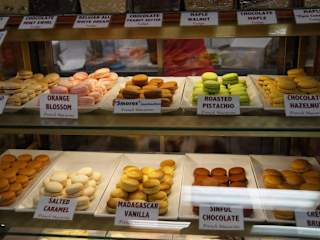 Der St. Lawrence Market ist ein großer Food-Markt in Toronto. Hier gibt es Obst und Gemüse, Fleisch und Wurst, Fisch, Gewürze, Gebäck und auch diverse Marktrestaurants. Begeistert sind wir von den Fleisch- und Fischständen. Die Steaks sind von beeindruckender Größe, unglaublich. Absolut beeindruckend ist aber die große Auswahl an frischem Fisch und Meeresfrüchten; Fischfilets von einer Größe und Qualität, die wir hier in Deutschland kaum sehen, außerdem Hummer, Garnelen, Jacobsmuscheln in unterschiedlichen Größen. Der Markt zieht sich über zwei Etagen und im Untergeschoss gibt es einen leckeren Bäcker-Stand mit …zig Sorten Macarons.