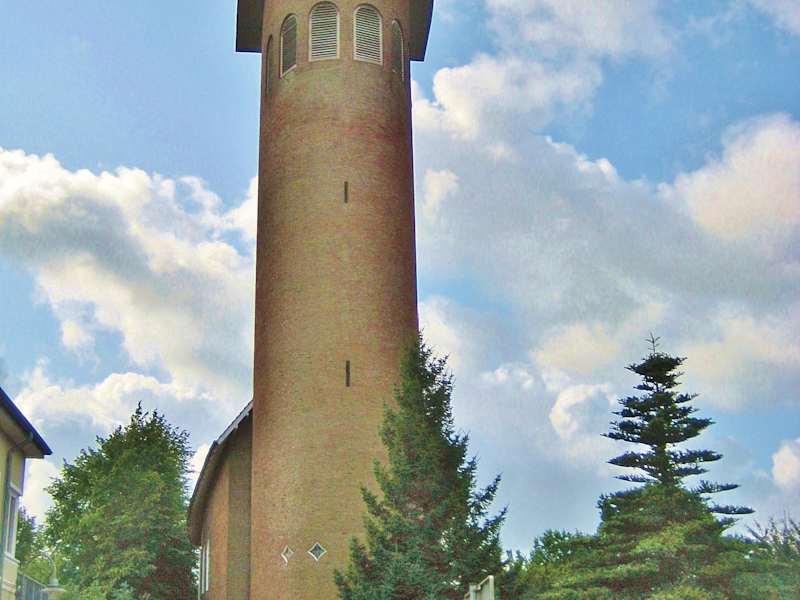 Außergewöhnlicher Kirchturm, sehr schöne Fenster