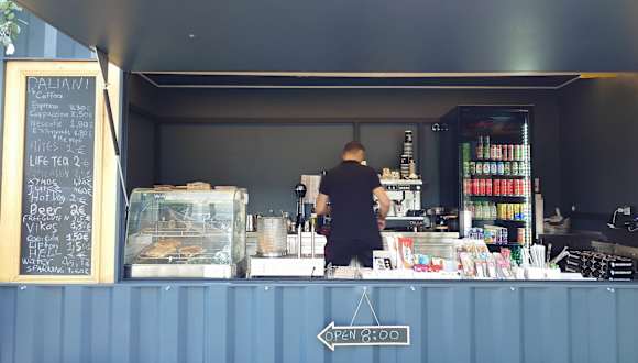 Kleine Taverne und ein Imbiss (mit gutem Kaffee) gegenüber vom Hotel Mediterranean Village Hotel & Spa.