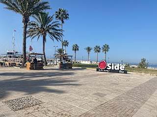 Vom Hotel Nerton läuft man die Strandpromenade entlang bis zum Hafen von Side - Altstadt ca. 35-40 Minuten. 300 m vom Hotel ist die Post. Zu den Mini Bussen, muss man einen Berg hochlaufen, bis zur Hauptstraße.