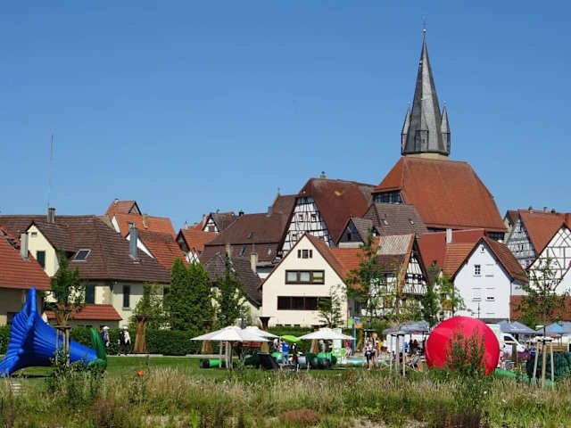 Vom Stadtweiher aus hat man einen wunderschönen Blick über einen Teil des Gartenschaugeländes auf die Altstadt. Wer nicht in die Gartenschau möchte - vom Gehweg oberhalb des Stadtweihers kann man die Altstadt entsprechend auch betrachten.