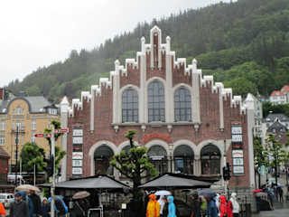Das Starbucks Coffee in Bergen ist im historischen Gebäude des Fleischmarktes untergebracht. Das wunderschöne Gebäude 1776 errichtet und diente mit 44 Ständen den Metzgern der Stadt. Im Jahr 2012 war die letzte Restaurierung und nun ist ein Ableger der amerikanische Kaffee Kette dort untergebracht.