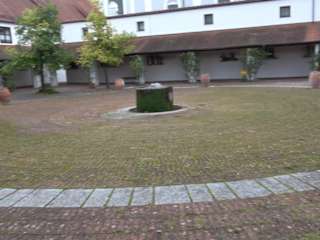 Der Stephanshof liegt hinter der gleichnamigen Kirche St. Stephan. Es ist ein viereckiger Klosterhof. Rechter Hand beginnt ein Kreuzweg, gestaltet von Michael Kaindl. Es sind schlichte Figuren, passen aber gut zur Umgebung. In der Mitte ins der Mechtildisbrunnen, er stellt die Quelle des Lebens dar. Pflaster als Rondell runden das Bild ab.