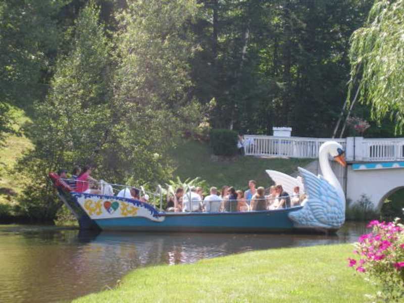 Das Storyland zählt zu den 15 besten Vergnügungsattraktionen im Raum der White Mountains, New Hampshire. Es liegt im kleinen Örtchen Glen an der Route 16, etwa 10 Kilometer nördlich von North Conway. Für uns ging es links los und so kamen wir nach der herrlichen Zugfahrt zu den **ANTIQUE CARS** In ganz neuen, auf alt gemachten Autos, die für vier schmalgepickte oder zwei eher fülligere Menschen Platz bietet geht es auf einem Kurs durch eine nachgestellte Landschaft New Hampshire inklusive überdachter Brücke. Da ich etwas mehr Platz benötigte, haben wir beschlossen, dass mein Mann mit unserer jüngeren und ich mit unserer älteren Tochter fuhr. Das bot auch gleichzeitig die Möglichkeit, einige Fotos zu machen. Danach wollten wir weiter **DR. GEYSER’S RAFT RIDE** Hierbei handelt es sich um so eine Art Luftkissenboot, das im Wasser treibt und die Möglichkeit ziemlich hoch ist, nass zu werden. Aus diesem Grunde haben wir das am Beginn ausgelassen und als allerletzte Attraktion genutzt, denn ich war am Ende wirklich „waschelnass“. Hier wurde mir dann aber auch klar, dass die Attraktionen erst zugesperrt werden, wenn der Park geschlossen wird, die Menschen, die aber noch an einer Attraktion angestellt sind, dürfen diese auch noch befahren. Egal, wir sind danach weiter zum **BAMBOO CHUTES** das wohl in jedem Vergnügungspark zu finden ist. In einem treibenden Holzstamm geht es in rasantem Tempo eine Art Wasserrutsche hinunter. Das habt ihr sicher schon gesehen, in Wien im Wurstelprater heißt das z.B. „Donau Jump“. Den Kindern hat es sehr gut gefallen und die Schlange der Wartenden war auf ein Minimum reduziert, daher fuhren sie gleich zweimal. Ich persönlich habe lieber von unten zugesehen. Was unsere Kinder auch nicht auslassen wollten - obwohl sehr viele Leute vor ihnen angestellt waren, waren die **FARM TRACTORS** Diese waren ähnlich den Antique Cars, nur dass es sich eben um Traktoren handelte und diese durch einen wilden Bauernhof fuhren. Ich habe es mir in der Zwischenzeit auf einem der herumstehenden Bänke gemütlich gemacht und die Atmosphäre in mich aufgesogen, was schon einen ganz eigenen Reiz hatte. Direkt neben den Traktoren ist der **CRAZY BARN** also der „wilde Schuppen“ zu finden. Der Heustadel erhebt sich in die Lüfte, dreht und wirbelt dort herum und war wirklich lustig anzusehen - von mir wieder nur vom sicheren Boden aus, aber mein Mann und die Kinder stürmten gleich hinein. Danach gab es für uns die erste Show, aber davon erzähle ich euch später in einem eigenen Punkt. Also lassen wir die Show aus und spazieren weiter zum **TURTEL TWIRL** Diese auf den ersten Blick ganz harmlos wirkende Attraktion war dann doch nicht ganz so sanft. In Schildkrötenboxen, in denen etwa drei Kinder Platz hatten, ging es einmal links, einmal rechts, einmal vor und einmal zurück und das in ziemlich schnellem Tempo. Aber da ich ja ohnehin zwei Wildfang-Kinder habe, war das für meine beiden genau das richtige. Ebenso wie der genau gegenüberliegende **FLYING FISH** Hier ist der Name Programm. Es handelt sich um ein Karussell, das hoch üben in den Lüften schwebt und so jede Menge Spaß verspricht. Während sich die Kinder hier vergnügt haben, haben mein Göttergatte und ich endlich mal einen schattigen Platz direkt in der Wiese gefunden und haben so auf die Kinder gewartet, bevor es weiterging zur **SLIPSHOD SAFARI TOUR** Die Idee hierfür fand ich total süß. Die Kinder fahren alleine in einer Art Kutsche mit Gitterstäben, damit ihnen auf der „gefährlichen Fahrt“ nur ja nichts passieren kann. Dabei kommen sie an Elefanten, Tigern, Nashörnen und Löwen vorbei. Natürlich geht wieder alles vollautomatisch, aber es sieht so aus, als ob die Kutsche von einer Art Traktor gezogen wird. Die Tiere im Übrigen sind nicht wirklich lebendig, was meine Kinder total traurig machte, denen sie haben sich eine Safari a la Animal Kingdom in Orlando erwartet. Danach ging’s für uns weiter zum **POLAR COASTER** der einzigen Hochschaubahn im ganzen Areal. Ein kleiner Seeelefant als Richtungsweiser wurde am ersten Waggon montiert und lädt zum Mitmachen ein. Das war für unsere Mädchen natürlich klar und da hier niemand angestanden ist, sind sie gleich dreimal gefahren. Ich denke, für kleinere Kinder ist das sicher nicht so anziehend, doch meinen hat es wunderbar gefallen. Etwas, das wir dann wieder zusammen gemacht haben, war das **BUCCANEER PIRATE SHIP** Auf einem großen Schiff, auf den vielen Menschen Platz haben und daher die Wartezeit sehr gering ist, ging es mit „Grrrrr“ und „Brrr“ ganz an Piratenmanier über die stürmische See. Natürlich versetzten wir damit die Leute, die zeitgleich auf dem schönen, romantischen Schwan fuhren, in Angst und Schrecken, aber das war ja auch beabsichtigt. ;-D Wir fanden es lustig, uns mal wie Piraten zu benehmen! **CINDERELLA CASTLE** Auch im Storyland darf ein Besuch von Aschenputtel nicht fehlen. Im großen Cinderella Castle, das aber leider eher am Rand des Parks auf einer Anhöhe zu finden ist und somit nicht der Hauptanziehungspunkt war, konnte man Cinderella treffen und Fotos mit der schönen Maid machen. Dafür waren selbst unsere Kinder noch nicht zu alt!!! Danach ging es mit der Pferdekutsche, die natürlich aus einem Kürbis bestand, zurück ins Tal, was ich als eine sehr gute Idee fand. Danach wurde es für uns Zeit, von einer Show zur nächsten zu hetzen und davon möchte ich euch jetzt weiter erzählen, zuvor aber noch kurz ein Überblick, welche Attraktionen wir ausgelassen haben. **FARM FOLLIES STAGES SHOW** Diese sehr kurze Show lädt ein, die einzelnen Obst- und Gemüsesorten auf einer Farm kennenzulernen und man soll sie vor dem bösen Raben und dem Hagel beschützen. Für unsere Kinder war es insofern interessant, als dass wir viele neue englische Wörter lernten. Oder hättet ihr gewusst, dass Garlic Knoblauch oder Cauliflower Blumenkohl ist? **IMAGINANTION MUSICAL STAGE SHOW** Once upon a time,