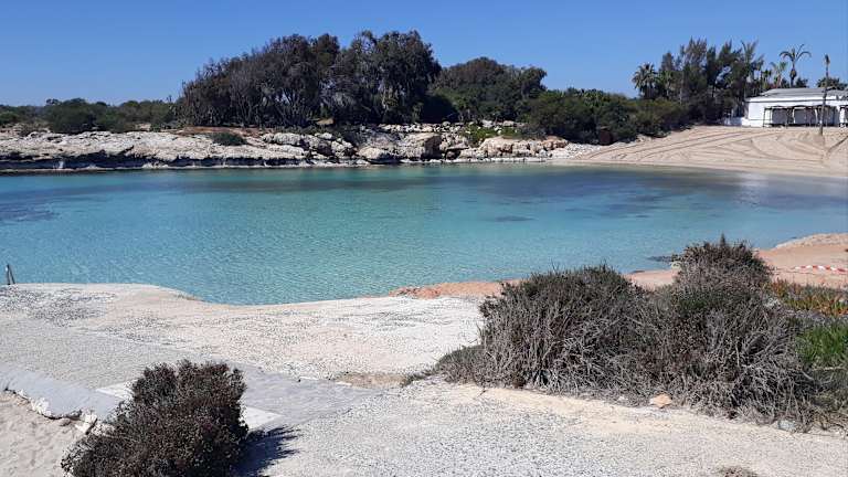 Der ca. 1 Kilometer lange Strand östlich des Ortes AyiaNapa ist der schöneste von allen. Herrlicher Sand, traumhaftes Wasser. ABER: bei Ostwind ist es dort beim besten Willen nicht auszuhalten, weil sich unweit des Strandes eine offene Müllverbrennungs-Anlage befindet. Müll aus der ganzen Gegend wird verbrannt - zu jeder Tages- und Nachtzeit. Und das heisst natürlich auch, dass man als Gast eines der sehr guten Hotels entlang des Strandes nachts aufwacht, weil man meint, das Hotel würde abbrennen. Gereinigt wird dieser schöne Strand natürlich auch: mit nächtlichen Traktor-Fahrten von eineinhalb bis zwei Stunden, rauf und runter, rauf und runter - ab ca. 2.30h nachts. Eine gesunde Nachtruhe kann man vergessen.