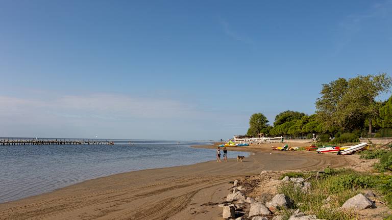 Leider kann ich den Strandabschnitt in Grado Pineta wirklich nicht empfehlen. Die Lagune scheint sich die Natur zurückzuholen, daher wächst das Seegras fast bis zum Ufer und schwimmen macht hier keinen Spaß. Mit SUP oder Luftmatratze lässt sich das Problem umgehen. Wir sind in unserem Urlaub mehrfach zur Costa Azzurra am anderen Ortsende geradelt, dort war die Wasserqualität um einiges besser.